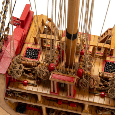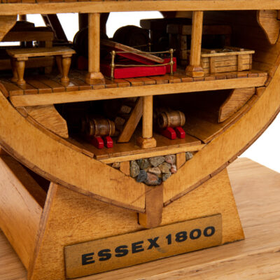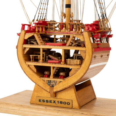 PIECE UNIQUE construite à partir d’un kit, cette coupe transversale de la frégate ESSEX construite pour l’US NAVY a participé à différents conflits entre 1799 et 1837 avant d’être capturée au large de Valparaiso.