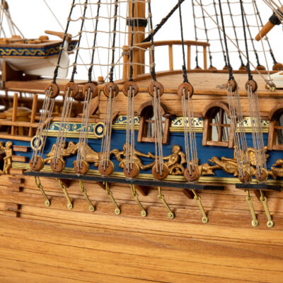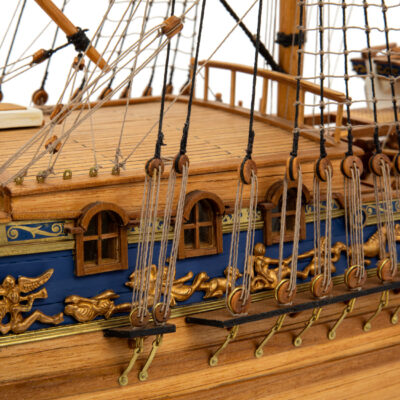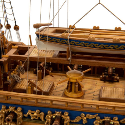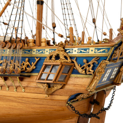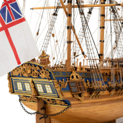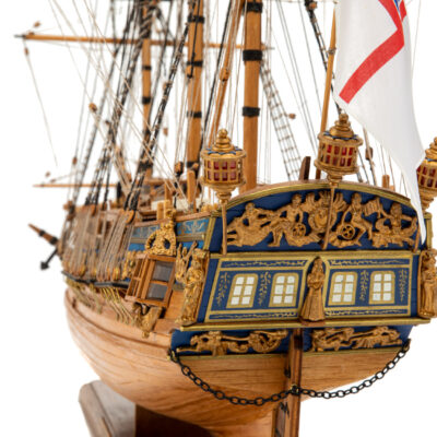 Construit au chantier naval Deptford sous la supervision du charpentier Hollond, d’après un plan de l’arpenteur de marine J. ALLIN, il mesurait 40 mètres de long et 7,5 mètres de large,