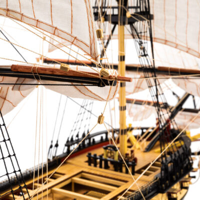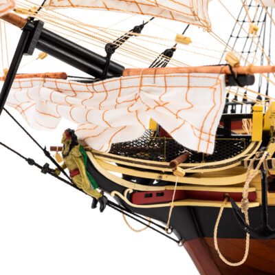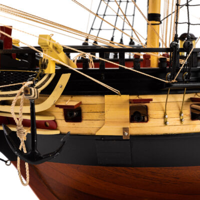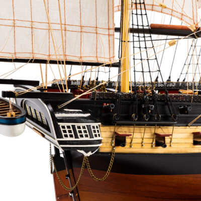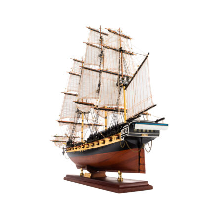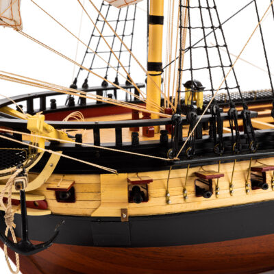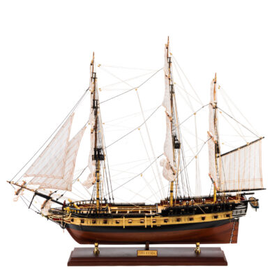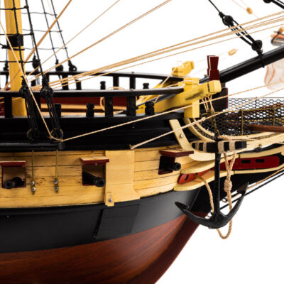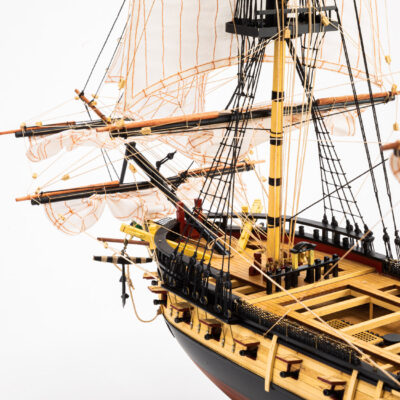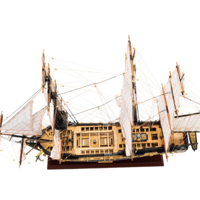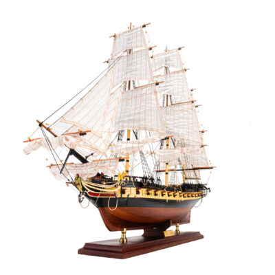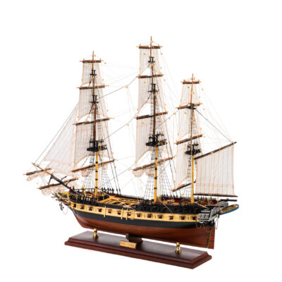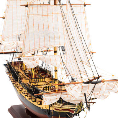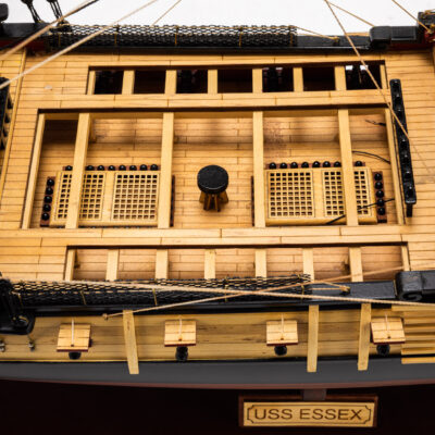 Cette maquette montée de la frégate USS ESSEX, est fabriquée en bois et entièrement construite et peinte à la main. L’originalité de son pont supérieur ouvert, sa réalisation très soignée, ainsi que la finesse de sa construction et de sa finition, permettra d’agrémenter votre décoration avec un très bel objet, élégant et original.
