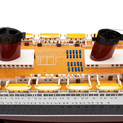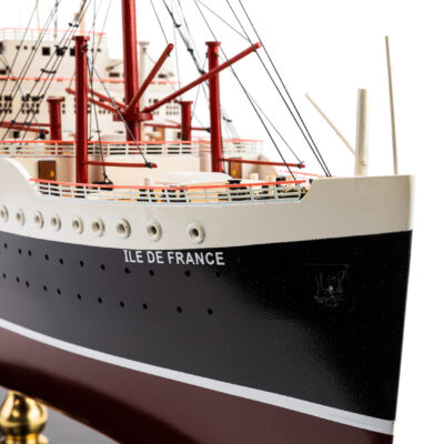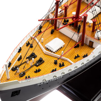 Son très haut niveau de qualité, de détail et de finition, fait de cette maquette de l’Île de France une magnifique réplique d’un des plus beaux paquebots transatlantiques issus des chantiers navals de Saint Nazaire.