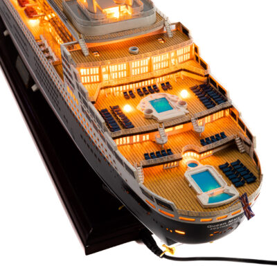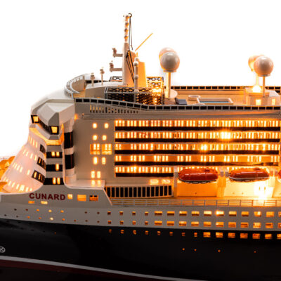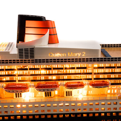Entièrement identique à la maquette du QUEEN MARY 2 présentée par ailleurs, nous vous invitons à vous y reporter pour toutes les photos, descriptions techniques et détails divers.